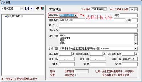 文件新建窗口中,可以选择计税方法(一般计税方法或简易计税方法)